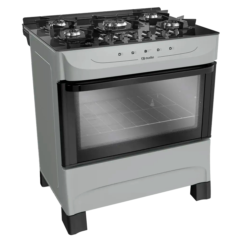 Fogão Mueller Mfv5bb 5 Bocas Automático Mesa De Vidro Temperado Com Ultra Chama – Titanium – Bivolt (Entregue por Gazin)